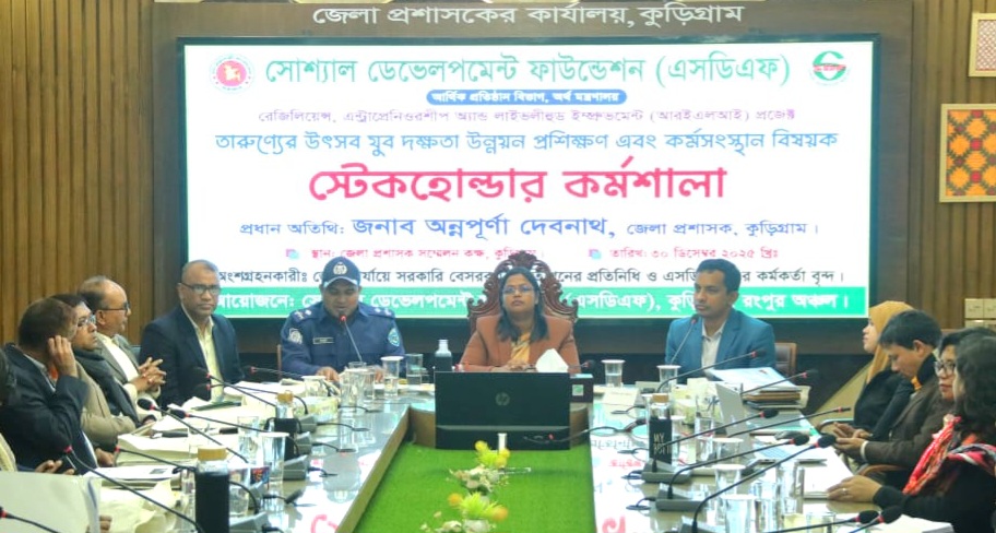 কুড়িগ্রামে তারুণ্যের উৎসব কে কেন্দ্র করে যুব দক্ষতা উন্নয়ন প্রশিক্ষণ এবং কর্মসংস্থান বিষয়ক স্টেকহোল্ডার কর্মশালা অনুষ্ঠিত হয়েছে।