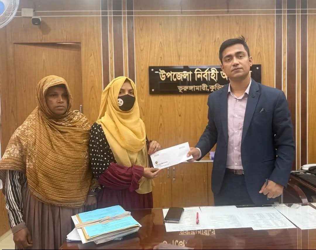ঢাবিতে ভর্তির সুযোগ পাওয়া মেধাবী মাছুমাকে শিক্ষা সহায়তা দিলো ভূরুঙ্গামারী’র ইউএনও