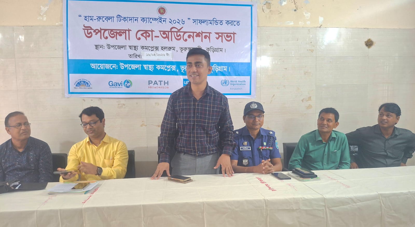 কুড়িগ্রামের ভুরুঙ্গামারীতে হাম-রুবেলা (এম.আর) টিকাদান ক্যাম্পেইন-২০২৬ সফলভাবে বাস্তবায়নে কো-অর্ডিনেশন সভা অনুষ্ঠিত হয়েছে।