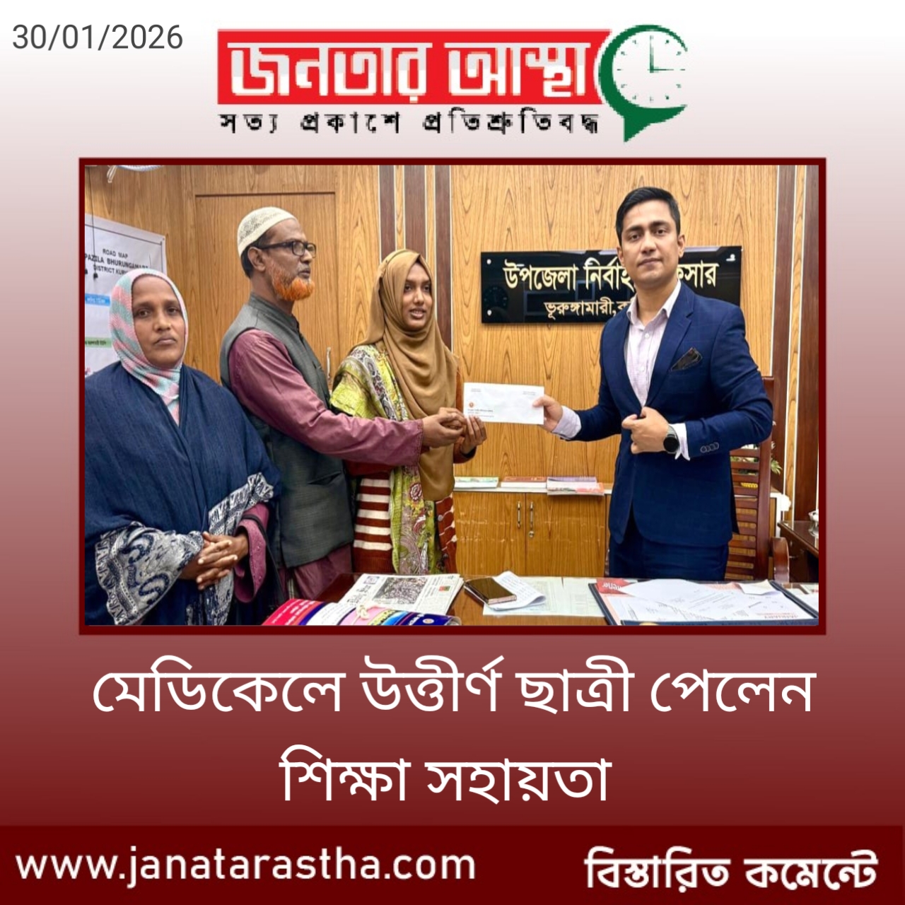 কুড়িগ্রামের ভুরুঙ্গামারীতে রংপুর মেডিকেল কলেজে ভর্তি হওয়া মেধাবী শিক্ষার্থী সাদিয়া খানম শেফা পেলেন সরকারি শিক্ষা সহায়তা অনুদান।